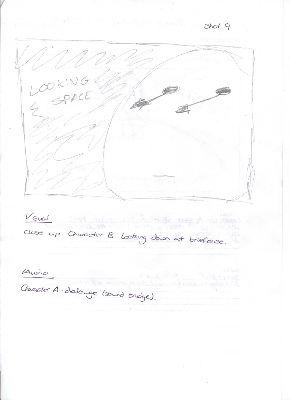Also, when putting together the storyboard, as well as concentrating on the visual part of the scene, we had to think about the audio that is going to be used in the scene. This included sound effects, background noise and any music that we wanted to include to help the overall affect of the scene.